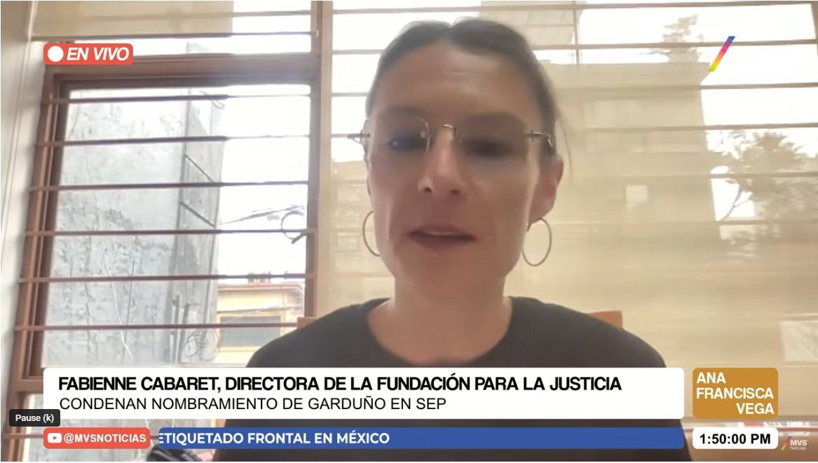 Fabienne Cabaret, directora de la Fundación para la Justicia, calificó el nombramiento de Francisco Garduño en la SEP como una ofensa para los afectados de la tragedia de 2023.