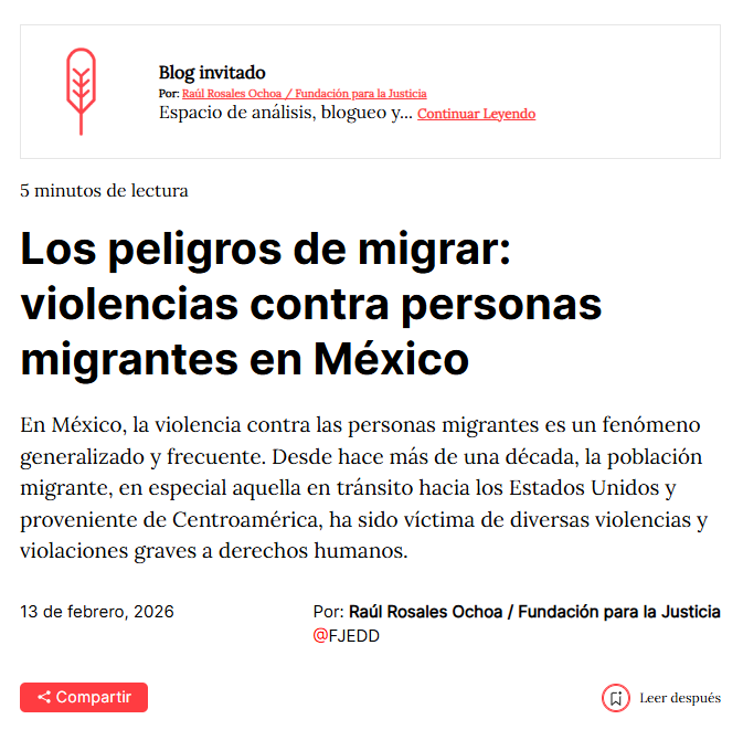 En México, la violencia contra las personas migrantes es un fenómeno generalizado y frecuente. Desde hace más de una década, la población migrante, en especial aquella en tránsito hacia los Estados Unidos y proveniente de Centroamérica, ha sido víctima de diversas violencias y violaciones graves a derechos humanos.
