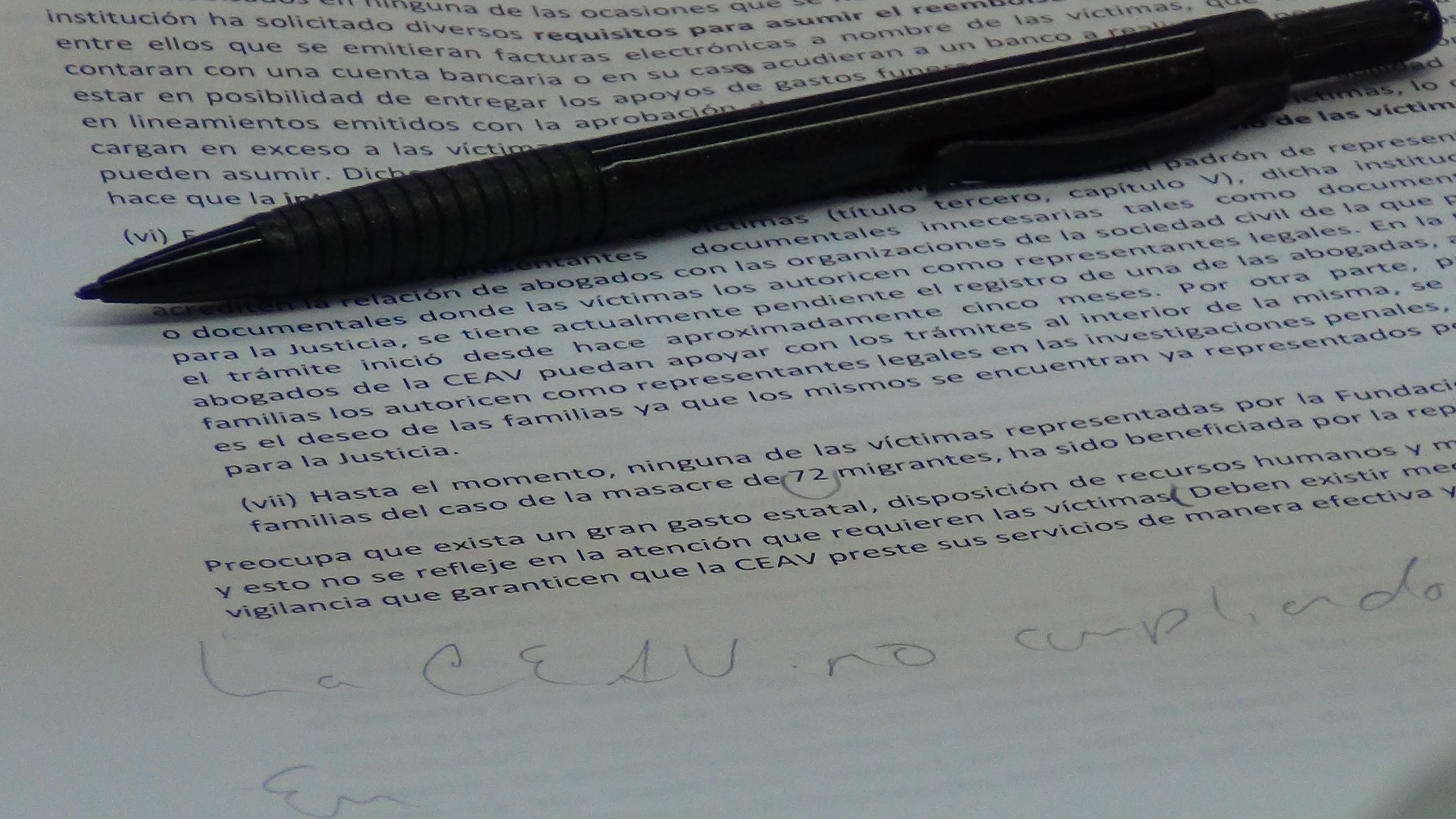 Llegaron con una cara y se fueron con otra, dejaron una parte de ellas y de quienes representan. Para reclamar a las autoridades, para que el mundo conozca sus exigencias: de justicia; de reparación de daños; del derecho a tener una vida digna; de que el Gobierno implemente el Mecanismo Trasnacional de Acceso a la Justicia para migrantes; de tener una base de datos de migrantes desaparecidos y asesinados en México (que las autoridades a la fecha no poseen); de hacer búsquedas en vida; de que las autoridades cumplan con sus responsabilidades y obligaciones, especialmente la Comisión Ejecutiva de Atención a Víctimas (CEAV), la Procuraduría General de la República (PGR), el Instituto Nacional de Migración (INM), la Comisión Nacional de Derechos Humanos (CNDH) y las Cancillerías de los países, entre otras.